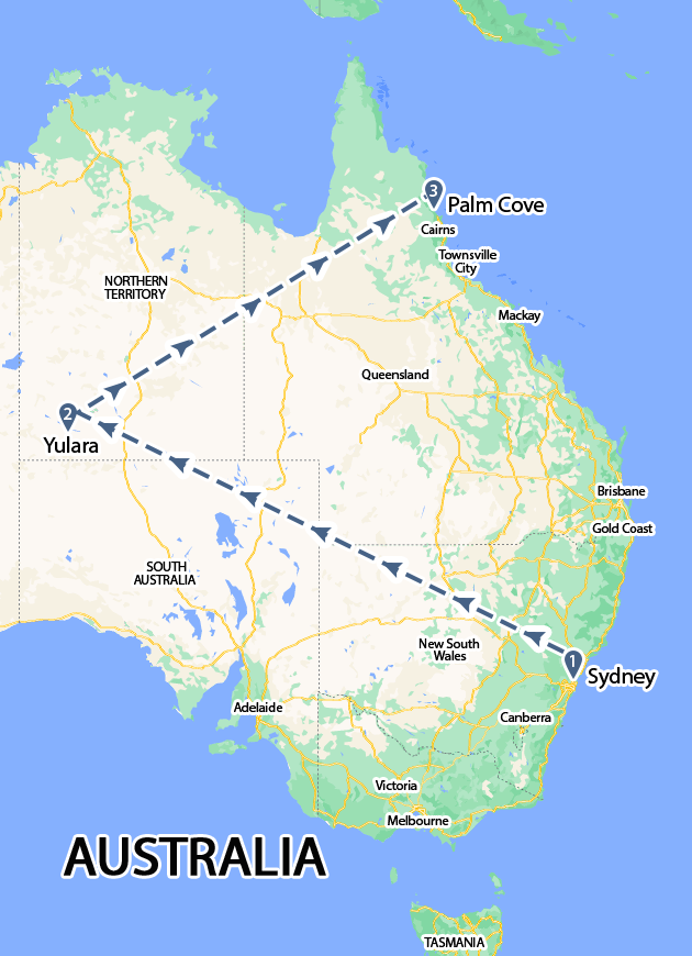 • Cities: Sydney, Yulara, Palm Cove